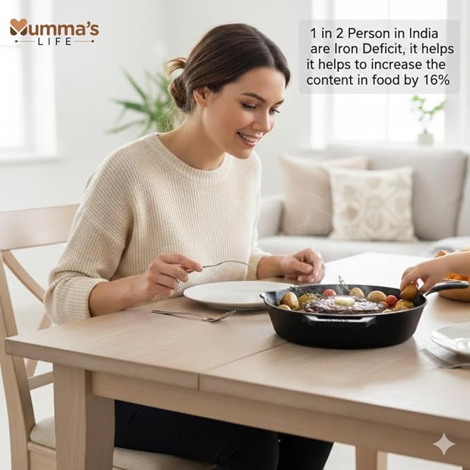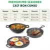 - HEALTHY & TOXIN-FREE COOKING: Switch to a healthier lifestyle with cast iron. Unlike non-stick pans with synthetic coatings, this set is completely chemical-free (No PFOA/PFOS). It naturally enriches your food with essential iron, making your meals healthier for the whole family.