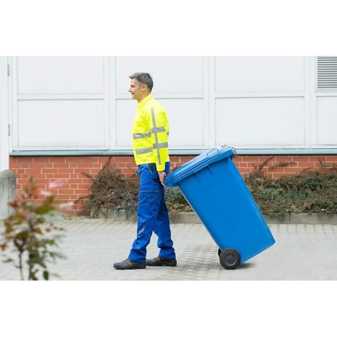 - 𝗦𝗺𝗼𝗼𝘁𝗵 𝗠𝗼𝗯𝗶𝗹𝗶𝘁𝘆 𝗪𝗵𝗲𝗲𝗹𝘀 – Our big dustbin includes solid rubberized wheels designed for easy movement from work areas to main disposal locations.