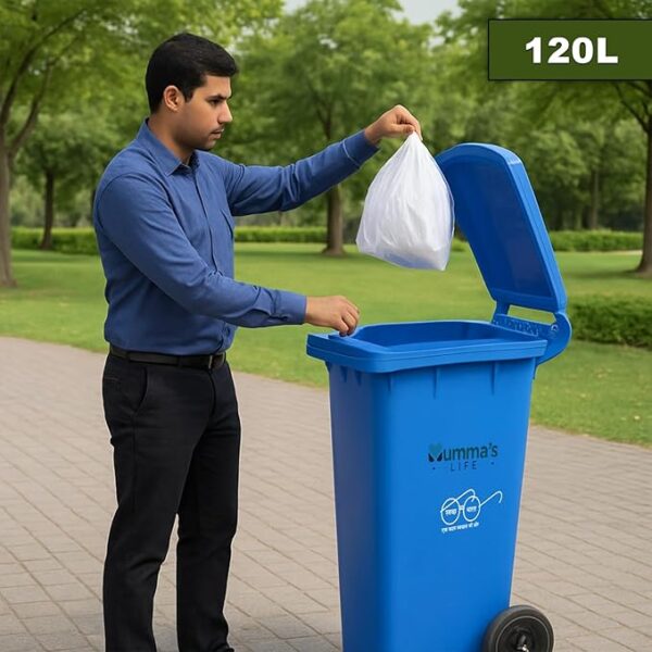 - 𝟭𝟮𝟬-𝗟𝗶𝘁𝗲𝗿 𝗦𝘁𝗼𝗿𝗮𝗴𝗲 𝗖𝗮𝗽𝗮𝗰𝗶𝘁𝘆 – This dustbin large size 120 litre provides spacious waste collection that helps manage household or workplace disposal with fewer emptying cycles.