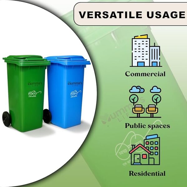 - 𝗛𝗲𝗮𝘃𝘆-𝗗𝘂𝘁𝘆 𝗛𝗗𝗣𝗘 𝗣𝗹𝗮𝘀𝘁𝗶𝗰 𝗕𝘂𝗶𝗹𝗱 – Our big dustbin extra large size supports daily waste handling with UV-stabilized HDPE material suitable for indoor and outdoor environments.