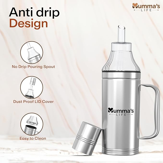 ● CLEAN — Anti-drip design to prevent oil leaks and control the usage of oil precise avoiding waste and good for health, keeping the pot clean and dry. Big mouth convenience for refill oil. The lid protects the oil from dust.
