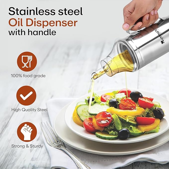 ● SAFE& DECLARE– The oil dispenser made of food grade thicken Stainless steel provide a durable and unbreakable usage test. Oil dispenser is BPA free, with dustproof cover.